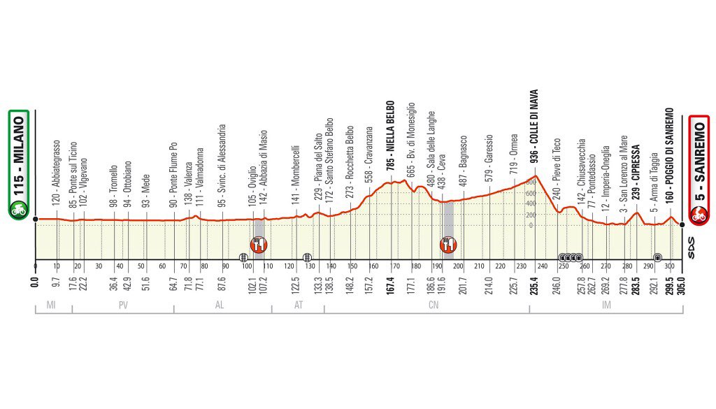 Milano sanremo presented by vittoria. De 111e editie van milaan san remo vindt zaterdag plaats op een parcours van 299 kilometer lang. Al via 27 squadre da 6 corridori in totale saranno 27 le squadre che percorreranno i 299 km da milano a sanremo ciascuna composta da 6 corridori. Un percorso inedito gli ultimi 36 chilometri invariati con cipressa e poggio.