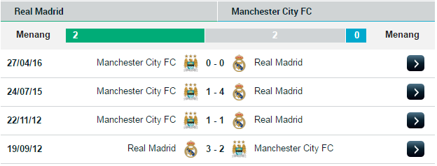 Prediksi Manchester City Vs Real Madrid Liga Champions H2h