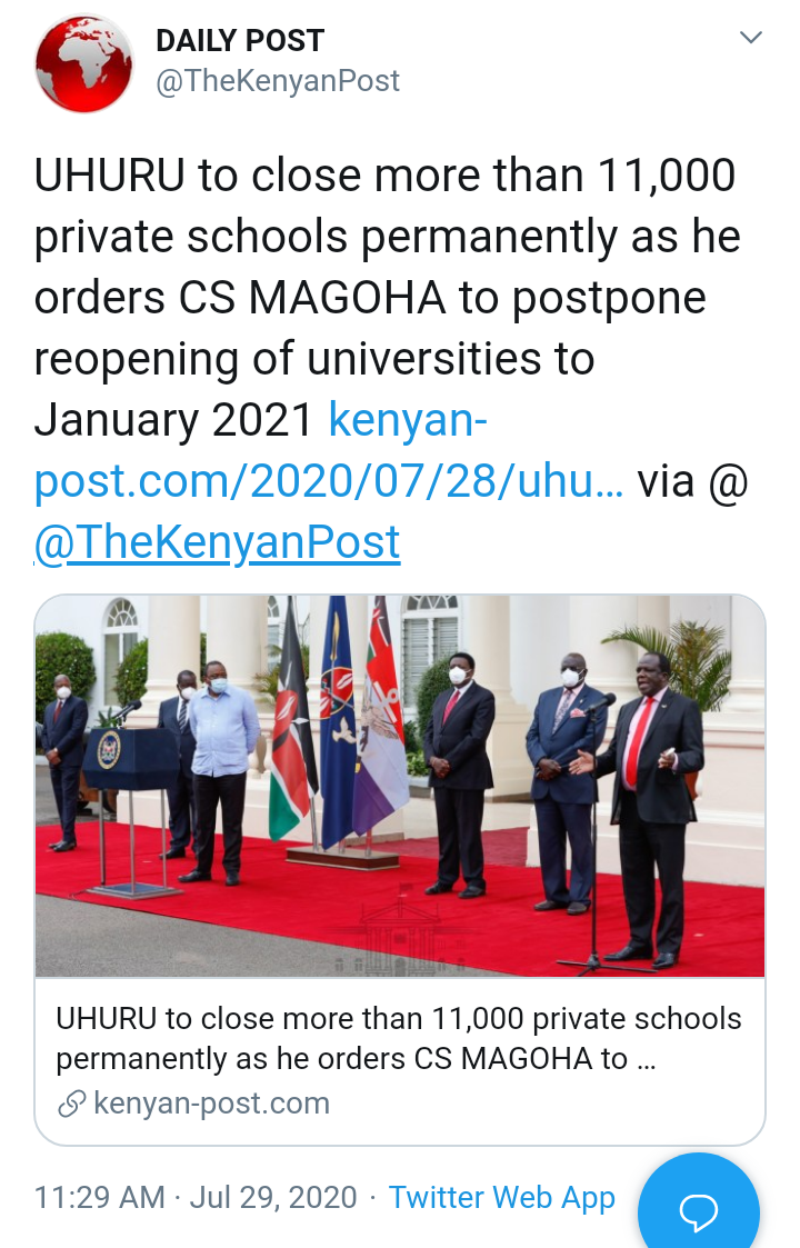 Uhuru S Secret Order To Magoha On Private Schools And School