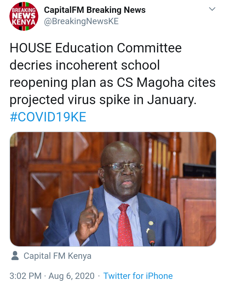 Cs Magoha Says Schools Reopening Solely Dependent On Moh Covid 19