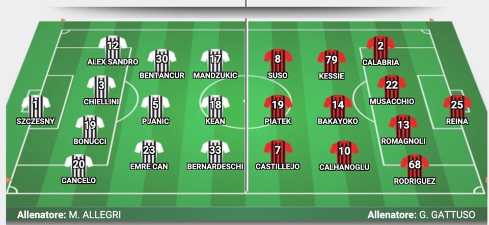التشكيلة الرسمية للميلان ضد يوفنتوس دزاير توب