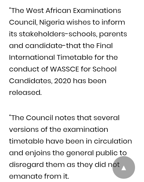 2020 Waec Timetable Is Out Now Education Nigeria